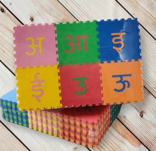 Make learning fun for your child with the Hindi Alphabets (Varnmala) Kids Learning Puzzle Foam Mat (48 Tiles). This colorful and educational foam puzzle mat helps toddlers and kids recognize Hindi letters while playing. Made from high-quality, non-toxic EVA foam, it is safe, lightweight, and durable. The interlocking tiles can be used as a play mat, learning board, or even small building blocks to boost creativity and motor skills.